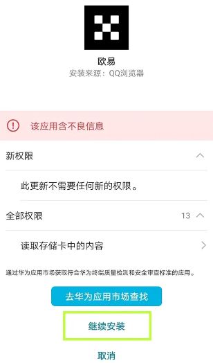在安装过程中选择允许继续操作,不要将应用移入安全管控范围。