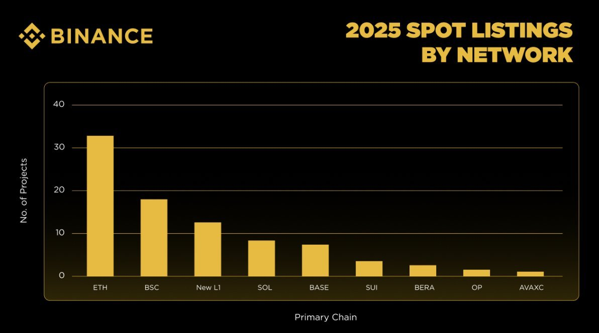 2025年,币安上线了87个项目,覆盖16个板块。