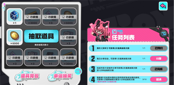 【抽取道具】:进行抽奖,都是游戏养成资源和抽卡道具