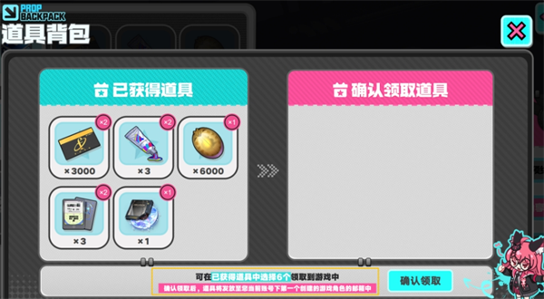 重点注意:抽完之后一定要进【道具背包】选6件道具带进游戏