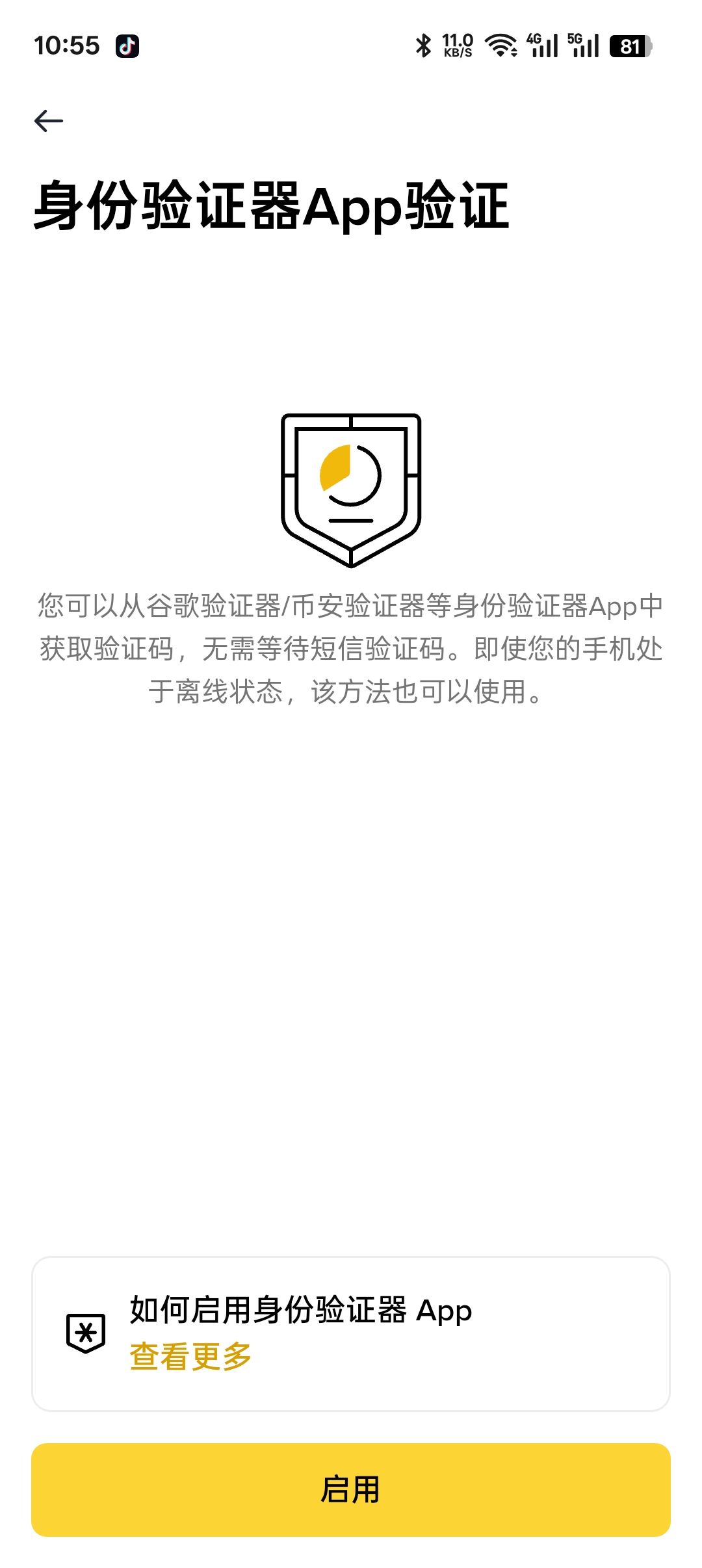 通过币安App个人中心进入账户安全模块,定位身份验证器管理选项并点击启用。