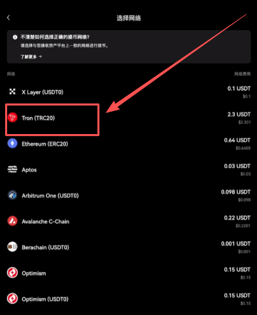主网选择:不同区块链网络互不兼容,USDT等多链代币必须确保收发方使用相同网络协议。