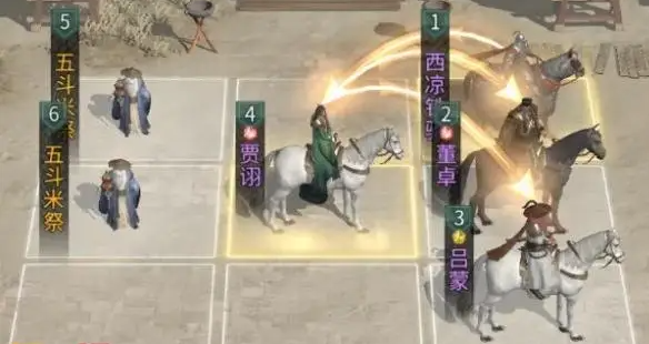 第二套推荐「惑心混乱队」:由贾诩、吕蒙、董卓组成,主打高覆盖率混乱控制与反制型生存结构。董卓天赋「独断专权」可发动主动效果,强制夺取敌我双方全体单位的统率值,并对随机3名敌方目标施加伤害与挑衅;吕蒙每回合为全体友军赋予「白衣」状态,该状态具备减伤功能,且在其主动攻击命中后可触发多目标挑衅;每当吕蒙承受伤害时,还有概率为当前兵力比例最低的友方单位再次叠加一层白衣。贾诩则作为混乱终端执行者,对处于嘲讽状态的目标造成额外伤害,并在释放谋略伤害时进一步扩大混乱覆盖率。三者形成闭环控制链,混乱触发频率越高,整体压制强度越强。