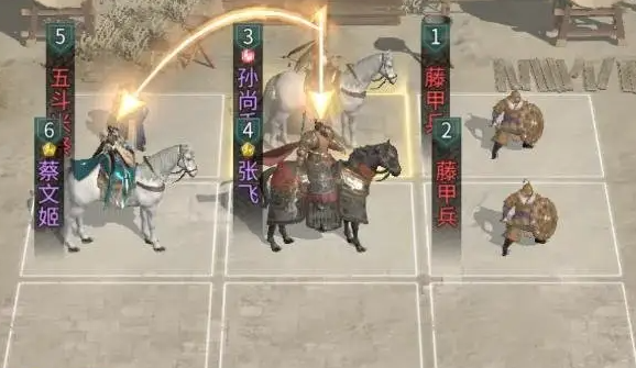 第三套为「虎啸连击队」:张飞、孙尚香、蔡文姬组合,兼顾群体压制、持续续航与战术灵活性。该阵容虽含传统元素,但机制深度突出——张飞提供大范围虚弱效果,削弱敌方武将基础属性;孙尚香凭借天赋可在追击行动中优先锁定威胁最高目标,造成伤害后以60%概率触发武力比拼,胜出则再次激活天赋进行多段输出;蔡文姬则承担双重职能:一方面强化自身增益稳定性,另一方面为孙尚香提供稳定治疗支持,保障连击链持续运转。三者协同下,队伍既具备前排抗压能力,又拥有中后排持续输出与状态干扰能力。