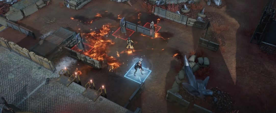 另一主动技【月夜深嚎】具备团队增益与形态切换双重功能:索普跃迁至指定的冷凝或燃烧类空地格,为范围内所有友方单位施加“杀戮踪迹”状态——当友方发动主动攻击,且攻击目标周围存在霜冻地格时,若该目标位于异位地格(即非相邻格),则本次攻击伤害提升;技能释放完毕后,强制切换至狂犬形态。