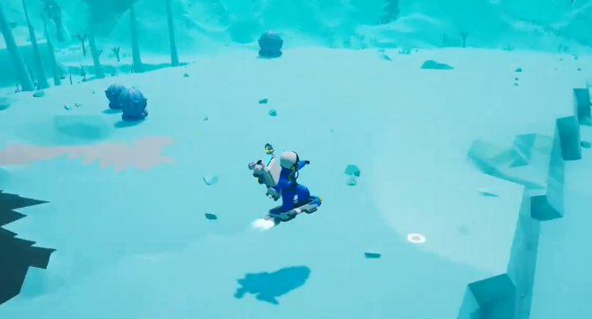 当MAT发射器成功激活且全部材料齐备,悬浮滑板将自动加入任务日志。玩家可将其拖入快捷栏并立即部署。启用后,角色可在冰原全域实现无阻力高速滑行,大幅提升铜、钛等基础矿产的定位与采集速率。面对冰裂隙、陡坡与不规则冰丘等地形障碍,悬浮滑板凭借稳定浮空特性,显著增强地形通过能力与操作容错率。