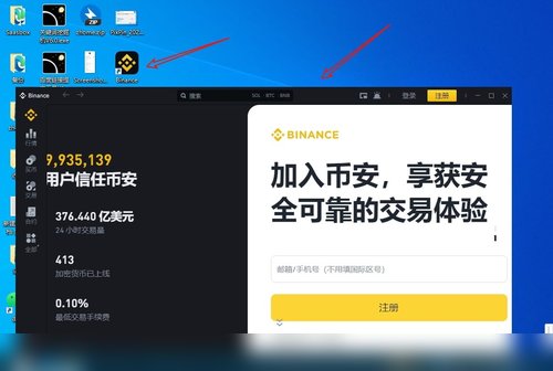 3. 安装完成后桌面出现币安App图标,点击即可进入;