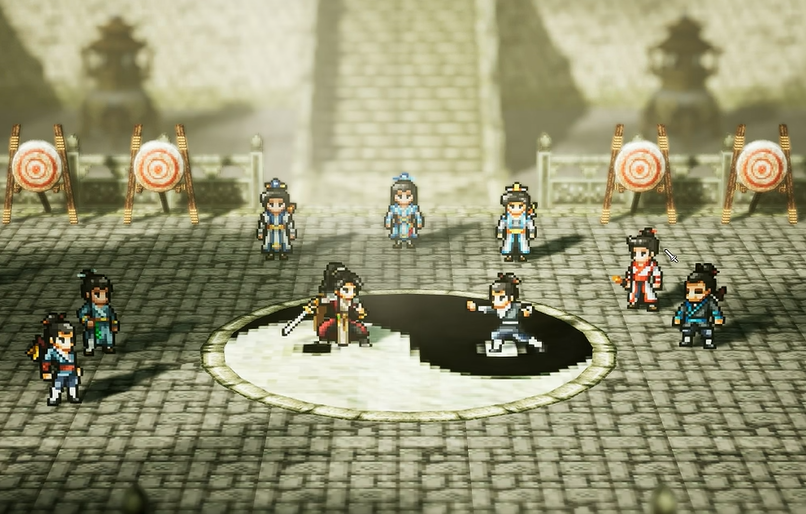 离庄前务必完成三人组队操作:邀请瑶姬时选择“叫名字”选项,可提升10点好感;随后依次确认欧阳雪与大师兄加入队伍。行至姑苏城门时遭遇伏击,大师兄随即提议改道西行,取幽云泽路径前进——至此,“品剑大会”整条任务链圆满完成。