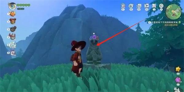 3、对石像的杯子使用水系精灵(任意水系技能),天空就会开始下雨。