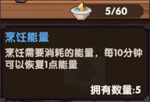 每次在食堂进行烹饪都会消耗【烹饪能量】,每10分钟可以恢复1点能量,上限60点。