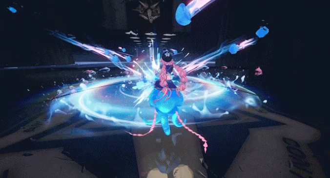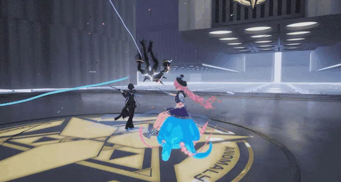 在空中施放普攻,将挥动指挥棒并快速下坠,落地瞬间触发范围性魂属性异能伤害。极限反击机制在此角色中实现自动化升级:触发后自动发射4枚水母弹,耐力值降至阈值后自动退出该状态。