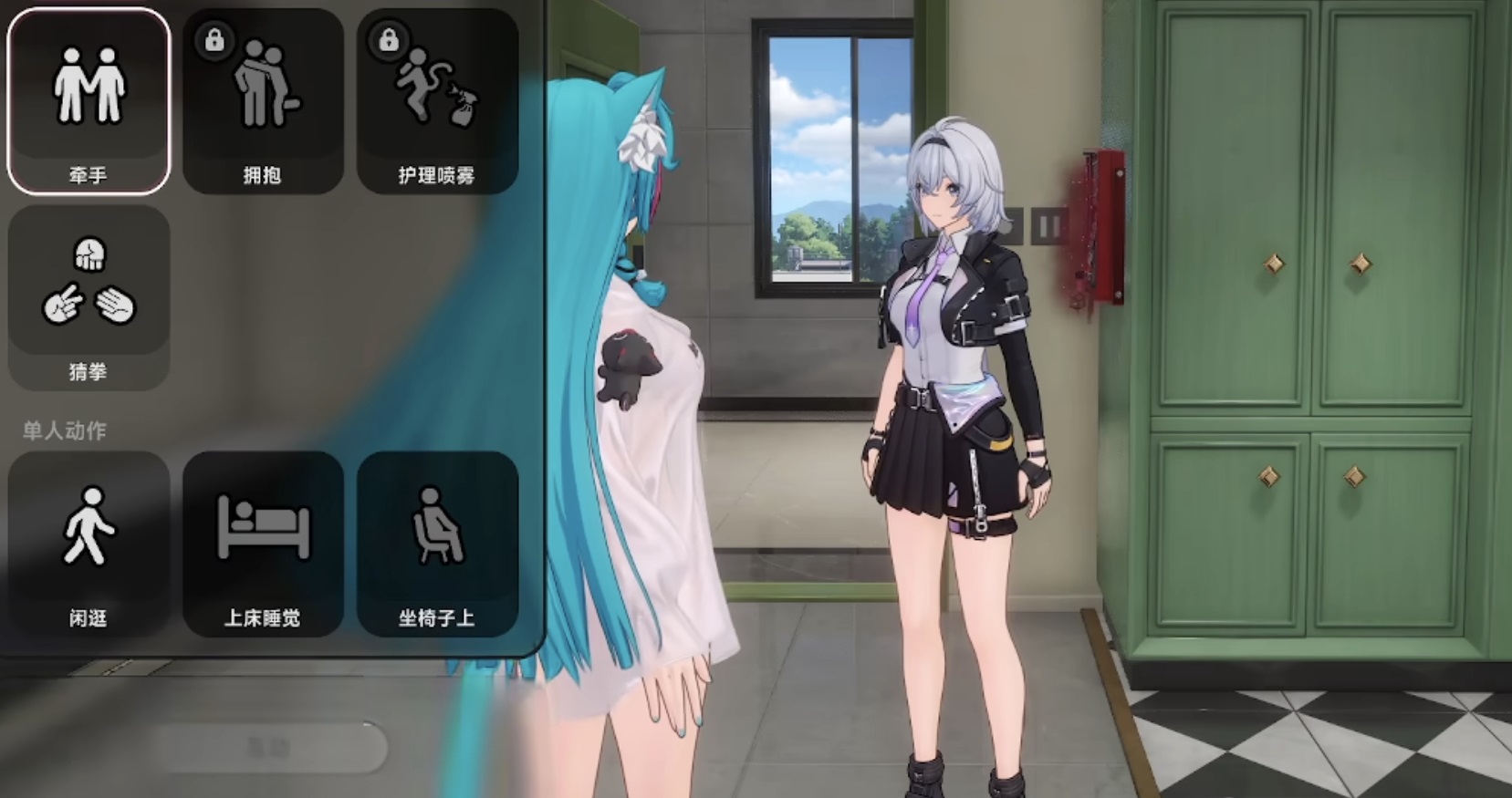 入住后,玩家可在住宅内触发丰富交互行为,包括牵手、摸头、拥抱等肢体互动,也可通过对话触发随机小剧情、专属悄悄话,或下达指令如“坐下”“睡觉”“看电视”,增强生活实感。每日稳定获取好感度加成,加速突破等级瓶颈。随着亲密度提升,还将逐步解锁对应角色的专属语音、家园专属台词、限定家具套装、个性化头像框,以及私密回忆片段、高清CG动画与角色背景故事文本。