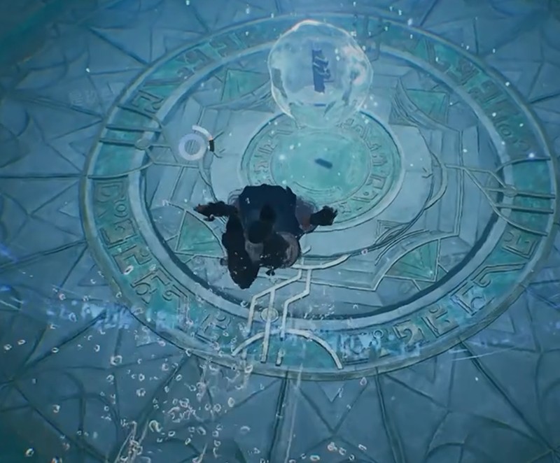 下水后保持游泳状态慢慢下潜,同时观察周围环境。水底中间位置有座方形石头祭坛,边缘有微光,叠嶂符印就放在祭坛正中间的台面上,游过去靠近会自动拾取。第一次下水的玩家可能找不到祭坛,可以浮上来换口气重新下潜,或者调整视角看底部地形,祭坛顶上刻着云纹图案比较好认。注意符印不在宝箱里,真正的叠嶂符印必须去水下拿。