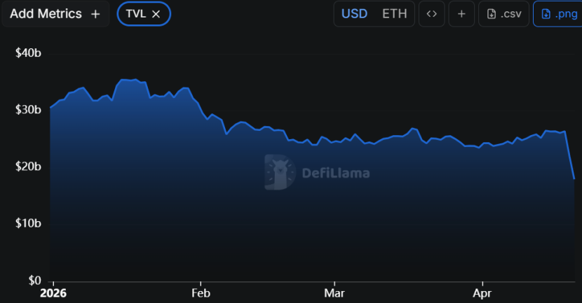 紧随其后的是全市场的资本外逃。DeFiLlama数据显示,Aave在单日内录得高达66亿美元的净流出,资金规模骤减23% 。