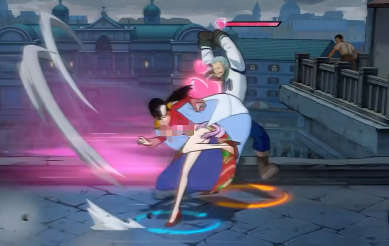 其二为【魅惑凝视】:除路飞外所有敌方单位与女帝正面相对时,头顶将浮现独立进度条。满格后目标陷入3秒【花痴状态】(不可行动、不可防御),此时可自由衔接连招。若敌人转身或脱离女帝视野,进度条将逐步衰减。