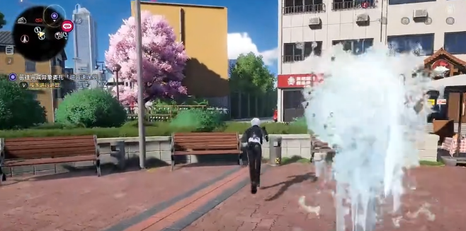 下一步传送至火炬大道电话亭。由此向上攀爬,抵达前方黑色高层建筑顶部;右转前行,第五处赠礼位于楼顶边缘。拾取后调头返回,依据地面指示牌提示跃下,进入黑猫主题区域,第六处即在此处刷新。接着面向变电箱,从其右侧缺口纵身跳落,着陆后转身观察身后大楼,锁定涂鸦墙面方位,沿墙左转,可见樱花树;跃上相邻绿色围栏即可激活第七处。从围栏跃下后,向右直行至绿色高架桥结构下方,第八处赠礼静待触发。沿桥体延伸方向前进,第九处将出现在桥面衔接处附近。