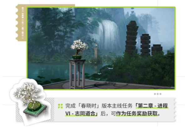 首批上线共三款装饰物,获取路径明确且互不重叠:「山槁小景」为「春晓时」版本主线第二章进程VI任务「志同道合」的通关奖励,属必做流程内产出;「充气教授」需将四号谷地矿脉源区的物资调度系统升至4级后,使用谷地调度券兑换;「龙泡泡石墩」则要求武陵景玉谷物资调度系统达到2级,即可凭武陵调度券换取——该途径资源门槛更低,适合中前期玩家优先入手。