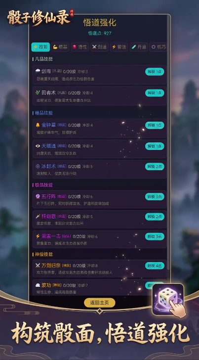 养成系统打破常规数值堆叠逻辑,心法修炼深度嵌入剧情分支与爬塔进程。玩家掷出的骰子结果直接影响可选叙事路径,每条路线最终导向不同的功法成就与境界突破,全游戏共设超10种差异化修炼结局,具备较高探索价值与重复游玩动力。