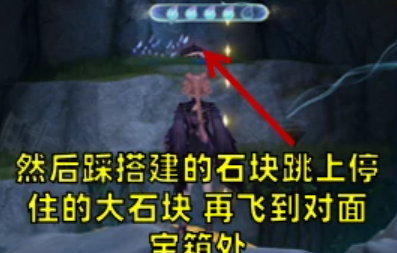 42、然后踩搭建的石块跳上停住的大石块,再飞到对面宝箱处
