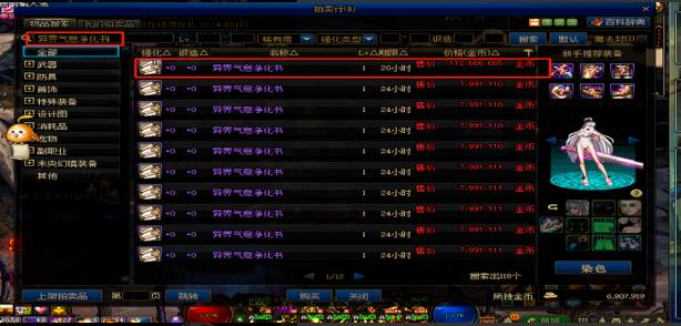 2.通过自行在拍卖场购买异次元气息净化书给装备赋予异次元属性,玩家可以参考下图: