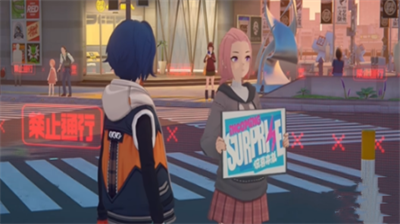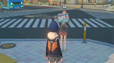 2、接着在三角人行道等待区域找到手持牌子的NPC提娜进行交谈。