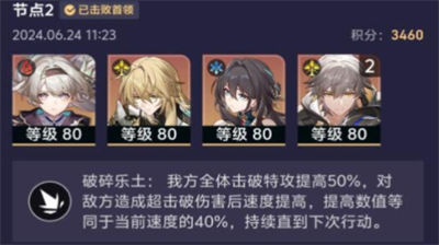 下半真的很适合超击破队,流萤,同谐主的e和罗刹(加拉赫我没练,应该效果更好)的大都可以帮助你快速破韧,而破韧后又可立马回满能持续输出。银枝破韧后,流萤基本开两次大就可以秒掉,非常爽快~不过这个队伍刚需阮梅和同谐主,队伍不多的萌新还是非常推荐培养的。