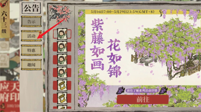2、进入公告页面,点击左侧活动选项,如图所示。