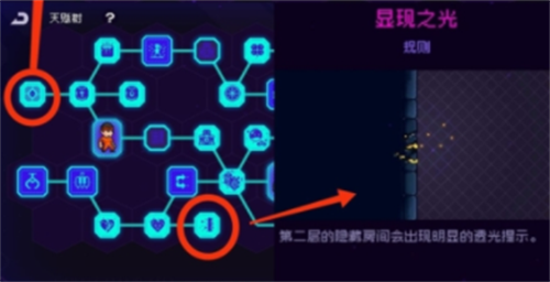 2、[显现之光]解锁后,在关卡第二层遇到隐藏房间时,会出现琻色粒子特效提醒,格外显眼。仅限第二层生效。