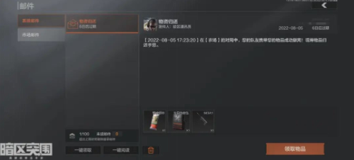 在暗区对局中,先锋们携带队友(无论他是否被淘汰)的物资成功撤离后,队友的物资会以邮件的形式归还队友。如果使用了队友的容器(如背包)携带物资,那么容器在被归还的同时,容器内属于你的物资也会通过邮件发送给你,如果发现找不到刚带出来的物资,不妨看看邮箱。