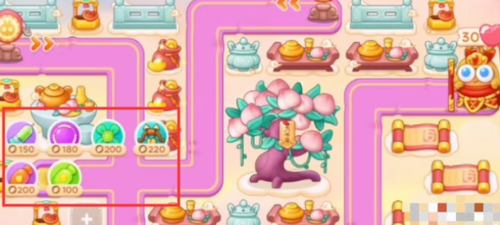 1、本关能够使用的炮塔是:毒针、魔法球、多重箭、风扇、火瓶,这一关我们比较好用的输出是风扇和火瓶。