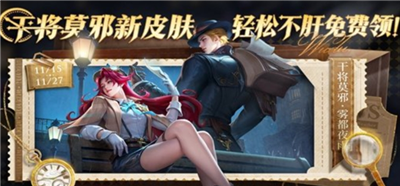 4、当玩家的侦探经验达到10、30、70、100时,可按顺序分别领取限时表情:真相只有一个(3天)、限时语音:showtime(3天) x4、干将莫邪-雾都夜雨皮肤、元流之子饰品-犀利目光镜。