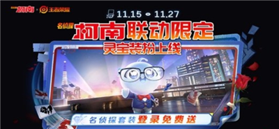 11月15日更新后-11月27日23:59期间,玩家根据提示点击大厅灵宝与其完成互动,即可免费领取名侦探柯南联动限定灵宝装扮【名侦探套装】。