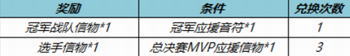 2.使用冠军应援音符可兑换总决赛两支战队的信物