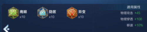 1.射手通用铭文推荐:10红色异变、10蓝色隐匿、10绿色鹰眼。