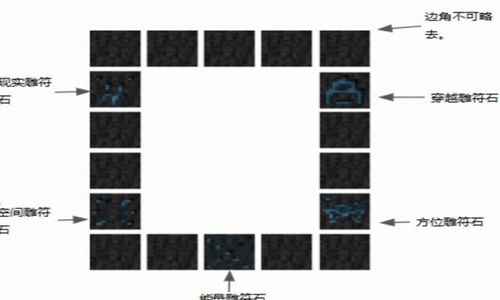 2.然后按照下图所示建造出一个宽5个方块,高6个方块的传送门框架;1个穿越雕符石