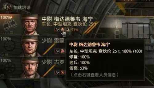 1.车长:老兵、鹰眼(本来想学灯泡的,但是熟练度才53%,没有效果)