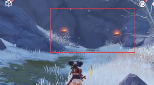 5. 来到下图所示位置后,打碎前方堵着的石头就可以打开一个洞口;