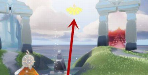 2.在游戏的主页面,站在石台上,点击顶部的光翼。
