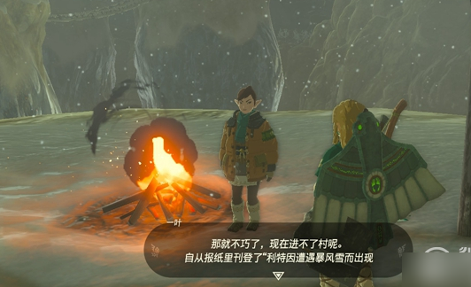 2、可是想要进来利特村的桥梁断掉了,这边需求运用风致风骚飞过去,在这边会看到一叶在篝火傍边,我们丢进海拉鲁球果进篝火堆里。