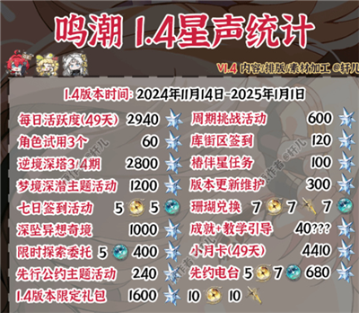 鸣潮1.4版本可获得抽卡资源有多少 鸣潮1.4版本可获得多少资源
