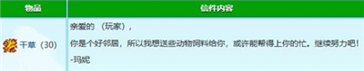 触发条件:达到7心之后,玛妮会寄一个大黄派食谱给你。