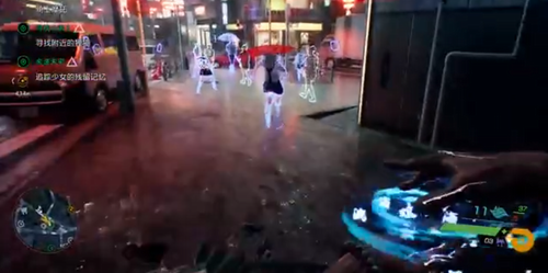 十字路口这里开透视视野可以看到绘梨佳的行走轨迹,最后发现她坐在路边,随后你被一群恶灵包围。