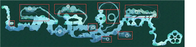 这张图是按照迷宫的思路来设计的,有比较多的隐藏区域和岔路口,如图所示,一共有12个隐藏区域(红框)和13个待收集光子。