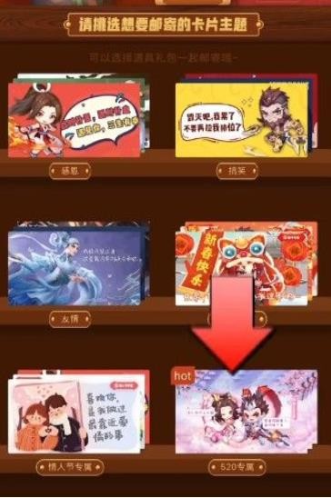 2.在王者荣耀专区页面中找到“寄卡片”按钮,点击进入。
