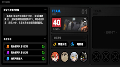 3、下半增幅电属性和物理属性,推荐安比+格莉丝/丽娜+安东的阵容来进行挑战。
