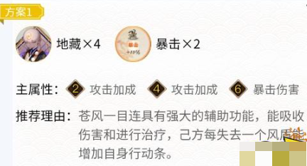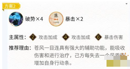 苍风一目连具有强大的辅助功能,能吸收伤害和进行治疗,己方每失去一个风盾能增加自身行动条。