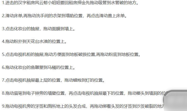 1、这一关是放出租屋中要回租房押金,把房里的瑕疵都盖住就可以了