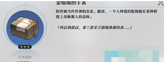 2、这两个选项是需要使用崇高道德的赞许,如果玩家选择了炸弹选项,将不会消耗赞许,玩家拿到行李箱之后会有一个金灿灿的手表,之后需要来到行政区的广场;