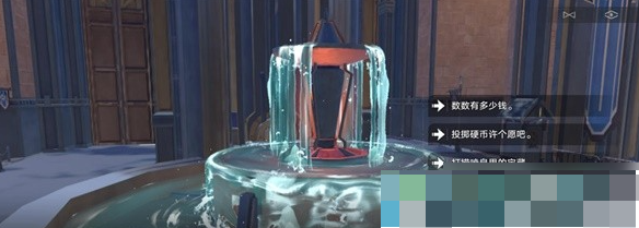 4、最后返回到行政区的喷泉处,选择第三个打捞喷泉里的宝藏,就可以用掉这个崇高道德的赞许,人后就会向业报成就完成了。