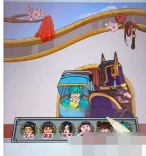 2、点击左侧人物到曹操走一个,然后门边人物绿色的鸡就会变为蔡文姬。